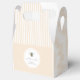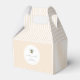 Dulce como puede ser, caja de favores de la ducha de bebé. Abeja de color agua dulce con melocotón pastel suave y fondo de rayas blancas.