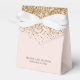 Trate a sus huéspedes con un regalo elegante, especialmente para ellos. Este diseño presenta un fondo rosa con falsos acentos purpurinas de oro.