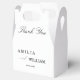 Encanta a tus invitados con esta minimalista caja de favores matrimoniales, perfecta para regalar dulces, pequeños regalos o notas de agradecimiento. Diseñada para complementar a los bodas modernos, esta caja de bienvenida presenta un estilo limpio y elegante con su elección de color de fuente (azul, marrón, negro u oro) y una cinta de coordinación para un toque pulido. Ideal para los temas de boda azul o marrón, esta caja agrega un elemento personal y memorable a su celebración. Úsalo para recepciones, duchas de novias, fiestas de compromiso o cenas de ensayo para añadir un detalle refinado y cohesivo a la decoración de la mesa.