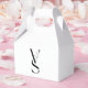Dé a sus invitados una hermosa muestra de su aprecio con estas elegantes cajas de favores monogramas. Con un diseño inicial de moda y personalizado estilizado en blanco y negro, esta caja de estilo gable es el tamaño perfecto para llevar dulces pequeños, caramelos o keepsakes. Personalízalo con tus propias iniciales para crear un toque atemporal y sofisticado para tu ducha de novias, recepción de bodas o celebración de aniversario. Fácil de ensamblar y diseñado por usted