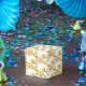 Caja de favores de partido mostrada en un diseño de impresión de estrellas de oro festivo. Personalizar este artículo o compra tal cual. Imagen de stock
