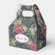Diseño clásico y elegante de patrones impecables hechos de flores rojas de Hibiscus y hojas en el fondo oscuro con etiquetas cuadradas y ovaladas para tu texto delante y etiqueta oval detrás con Gracias. Personalizable 80 cumpleaños, caja de favores. Puede cambiar fácilmente el texto (fuente, color, tamaño y posición), cambiar la transparencia de las etiquetas (copiar o borrar una de ellas) y cambiar el tamaño y la posición de la imagen de fondo haciendo clic en el botón de personalización o personalizable. Platos de papel de cumpleaños y otros productos.