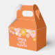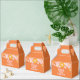 Cajas de favores de inspiración retro, jóvenes silvestres y de tres años, con flores de estilo de los años 70 y fuentes y colores boho.