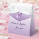 Las animadas vidas son el tema de esta elegante caja de favores matrimoniales que cuenta con pulverizadores de lila rosa y malva sobre un fondo morado. Personalizar el texto para tu ocasión especial.
