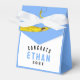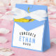 Favoritos creativos de la fiesta de graduación y regalos de pastoreo con diseño de gorra azul claro y línea de felicitaciones. Edita texto para añadir el nombre de tu graduado favorito y el año.