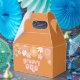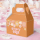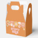 Groovy One Retro Floral primer cumpleaños cajas de favores con flores de estilo de los años 70 y fuentes y colores boho.