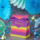 Gracias a sus empleados, o clientes con un regalo especial o una caja de regalo. Ideal para regalos corporativos para clientes o empleados. También se puede usar para favores de boda o celebraciones de cumpleaños llenas de dulces o regalos. Un perro brillante estilo rayado de dientes rosado, verde limón y violeta estilo flap caja. Diseñado por Sarah Trett.