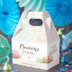 Una pequeña caja de embalaje para los panaderos de macarón, uso perfecto para los clientes que están comprando un solo macarón y se necesita una caja para poner unos cuantos. Un hermoso patrón de damasco arco iris bordea la caja con imágenes de macaron y tiene espacio para introducir su nombre de negocio, sitio web, ubicación e información de instrucciones de almacenamiento.