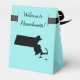 Estos pequeños y dulces cajitas de mapas son perfectos para dar a sus huéspedes cuando se registran en su hotel. Llena de pequeños dulces que pueden disfrutar antes de que comiencen las festividades. O bien, envíenlos a casa desde la recepción con un aperitivo de medianoche. Puede cambiar el color de fondo para que coincida con el tema boda.