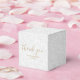 Elegante blanco sobre el patrón de impresión de fibra blanca con sus nombres en letras de oro de moda, estas cajas de favores de 2" cuadradas son hermosas para favores de boda, favores de ducha de novia o cualquier ocasión especial.