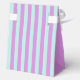 El moderno Pastel Verde azulado de rayas rosadas Favor Box es un fiesta perfecto para el cumpleaños de los chicas o cualquier ocasión. Los suaves colores pastel, verde azulados y rosas, crean un ambiente apasionante para el diseño. Las franjas verticales de la cubierta van hasta la parte de atrás, mientras que los lados están lisos. El anverso está formado por una franja verde azulada en tonos pastel en la que se resalta el nombre de la celebración, mientras que en la esquina inferior derecha se encuentran los detalles de cumpleaños con un fondo rosa oscuro. El "gracias" sobre un fondo rosado oscuro en forma de diamante acentúa la cubierta de franjas verticales.
