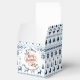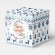 Personalizable Feliz Navidad con la tradicional caja de favores de la imagen vintage (hojas holly). Su nombre y mensaje sobre el hermoso patrón de estilo de Laponia en fondo azul y blanco. Navidades personalizados que coinciden con productos artesanales, servilleta de papel, placa de papel y más... Hay otros modelos disponibles.