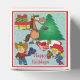 Caballo personalizado de pie con regalos de un árbol de Navidad. También hay una pequeña vaquera sobre un caballo con palos y un pequeño vaquero con un títere de caballo. El fondo es la impresión purpurina de FAUX con un borde rojo y blanco en los 4 lados y arriba. Se puede cambiar el texto de arriba. Vea otros artículos de vacaciones en el Rodeo Days Store.