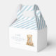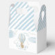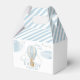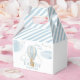 Oso de peluche azul claro que vuela en globo de aire caliente en aventura temática comienza baby ducha caja de agradecimiento.