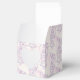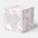 Caja de favores de boda ideal para mostrar su aprecio a su dama de honor, chicas de flores o damas de honor y otros asistentes a su boda. Una pareja de pájaros en un dibujo gráfico de jaulas de pájaro abierto colgando de un árbol de primavera floreciente con corazones. El moderno diseño boda de moda de moda forma parte del juego de boda romántico jaula de pájaro. tonos pastel bonito violeta, rosa y marfil. Dé a tus damas de honor regalos de boda y favores en estas hermosas cajas de favores de boda. Arte y diseño únicos por Sarah Trett.
