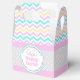 A sus clientes y socios de referencia les encantará recibir algunos tratamientos especiales en esta caja de favores de chevron pastel con un lindo gráfico de oreja conejil. Personalice con su nombre y la información de contacto para que sea una fiesta muy festiva.
