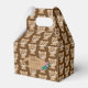 Una bonita caja de favores marrón con un pequeño patrón de tazas de oso personalizado. Ideal para una ducha de bebé o para un cumpleaños pequeño con un tema de bosque. Personalízalo usando la plantilla . © ArianeC Ilustraciones-Todos los derechos reservados