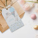 Etiquetas de regalo personalizadas - fácil de personalizar como su etiqueta de regalo para un regalo de recién nacido, etiquetas de ducha de pantalla o, por ejemplo, etiquetas de favores de ducha de bebé. El diseño se compone de un pequeño conejo con un globo azul y un ramo de flores. Las etiquetas están bordeadas de flores azules con dosel y el cartel está escrito a mano con "It's a Boy" en tipografía caprichosa. Tiene una suave paleta de color azul con mucho espacio en blanco en la parte posterior si deseas escribirlas.