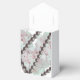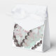 Clásicos cuerdas de perlas con delicadas hortensias rosas y blancas acentúan esta caja de favores, perfecta para bodas o eventos de ducha de novias.