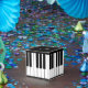 Diseño gráfico de un teclado de piano por la artista/diseñadora Charmaine Paulson en una caja de favores de una fiesta. El cuadro de favor tiene plantillas de texto para su personalización. ©2014charmainepaulson