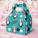 Minty green, white and black Navidad pickleball Favor Box con pingüinos jugando pickleball y copos de nieve sobre fondo amarillo. Gran idea para envolver tus regalos para tu amigo o miembro de tu familia de pickleball