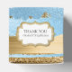 boda de moda o caja de regalo especial de ocasión, con gráficos de un Relieve metalizado azul y dorado y un aspecto de rayas abstractas de aspecto purpurina. Una placa decorativa dorada y blanca, en la tapa de la caja, tiene texto personalizado listo para personalizar para tu evento.
