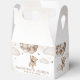 Encanta a tus invitados con nuestro Baby Shower Favor Box "We Can Bearly Wait" (Podemos esperar temprano). Con un adorable oso marrón adornado con un elegante arco marrón y globos en tonos cálidos y terrenales, este encantador diseño se sitúa en un marco soñado de nubes onduladas y estrellas brillantes. Es la manera perfecta de agradecer a sus invitados y añadir un toque caprichoso a su celebración especial. Haz que tu ducha de bebé sea inolvidable con estas encantadoras cajas de favores. BBS391
