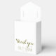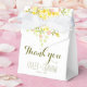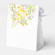 Bonita caja de favores matrimoniales en un alegre esquema de color amarillo y verde sobre un fondo blanco y fresco. El ilustracion original de flores y vegetación adorna la parte delantera y trasera de la caja. Personalice con su texto, los nombres de la novia y del novio y la fecha del boda. Perfecto para una boda al aire libre, primavera, verano, noche o jardín.