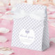 Una gingham púrpura y blanca a cuadros hace una caja de favores clásica y adorable que coordina con la colección de ducha de bebé Lea Delaveris Design gingham. La parte delantera incluye un punto para el texto del personalizable - un nombre, gracias, es un chica - junto con un dulce punto polka baby bow. Esta caja de bienvenida es perfecta para cualquier chica con ducha de bebé y también funciona bien para el bautismo.