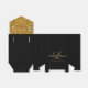 A los bodas les encantará su atención por los detalles. Personalice esta preciosa caja de favores matrimoniales de purpurina de oro con su monograma personalizado, nombres de novias y novios y fecha boda. Elke Clarke © Perfecto para un elegante boda de vidrio negro y dorado.