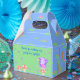 ¡Gracias a sus invitados por venir a su fiesta de té con una caja de regalos para llevarla a casa! Este diseño presenta su hada de cumpleaños en un hongo con un mensaje de agradecimiento a sus fiestas.