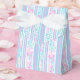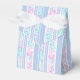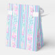 Una caja de carpas con un patrón de rayas rosadas, azul cielo y blanco para las tumbonas y rosas rosas rosas rosas. Parte de la colección "Días de verano" de Posh & Painterly, este patrón se puede ajustar para que se ajuste a cualquier caja de favores.