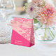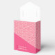 Rosas geométricos Caja de Favor de la Boda Roja presenta un patrón geométrico de rosas con color rosa, coral y rojo con color rojo complementario que se mezcla armoniosamente como uno. La tipografía inclinada crea un estilo único con la franja rosa de coral que resaltar.