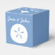 Dé a tus huéspedes, damas de honor, padrinos o a cualquier otra persona un placer especial con estas cajas de personalizable de fondo azul perwinkle con un dólar de arena blanca, una concha y una estrella de mar en la parte delantera, trasera y superior de la caja, respectivamente. Cada uno de estos lados también incluye algunos ejemplos de texto que puede personalizar para su propio boda o evento de verano o de temática playera. No olvide visitar los demás productos del Summer Seashells in Periwinkle para crear una verdadera coordinación de su evento.