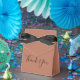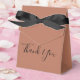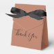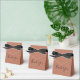 La caja de favores, sencilla pero elegante, cuenta con un fondo de terracota emparejado con un caprichoso tipo de letra de guión. Personalice este diseño con su propio texto si lo desea. Personalizar este diseño seleccionando el enlace "personalizar adicional" en la sección de personalización de esta plantilla.