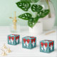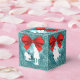 Siluetas de vaquero y vaquero rotando en adornos azules con arcos rojos en cajas de regalo o favores de vacaciones. El fondo es el purpurina FAUX azul. Ningún purpurina real. Vea otros artículos de vacaciones en Red Barn en el Rodeo Days Store.