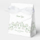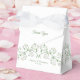Las elegantes viñas de flores blancas forman un corazón con Gracias en el texto verde sobre la solapa de cierre. Texto inferior personalizar para la cena de Bridal Shower, Boda o ensayo.