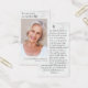 Estas tarjetas de oraciones fotográficas del tamaño de una billetera son fáciles de llevar en una billetera o bolso, lo que las convierte en un gran regalo para los amigos y la familia que asisten a un funeral, servicio conmemorativo o celebración de la vida. Esta tarjeta ha sido diseñada con Salmo veintitrés pero puedes cambiarla a otra oración o poema usando el botón Personalizar. La fotografía tiene fines ilustrativos y puede cambiarse a una de las tuyas.