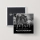 Botones conmemorativos del funeral personalizados con una foto de tu ser querido, la simpatía que dice "para siempre en nuestros corazones", su nombre y fechas de nacimiento y muerte.