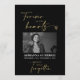 Este programa plano presenta un elegante estilo minimalista moderno que incluye una elegante redacción manuscrita de escritura tipográfica que dice "para siempre en nuestros corazones" en falso oro, acompañado de un serif texto blanco sobre un fondo negro que personaliza el nombre y la información del programa de servicio funerario de su ser amado fallecido, incluyendo su fecha de nacimiento y fecha de muerte. Nota: El elegante guión de tipografía escrita a mano "para siempre en nuestros corazones" con corazón, "se ha ido pero no se ha olvidado", "tiempos de servicio", "seguido de recepción", "obituario", "orden de servicio", y gracias, y las líneas y otros elementos gráficos no pueden editarse, cambiarse, moverse ni eliminarse. Están arreglados. No hay impresión de Relieve metalizado de oro. Puedes personalizar este programa de fotos conmemorativas del funeral de cualquier manera que quieras recordar y honrar la memoria de tu ser querido.