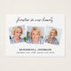 Cartas de oración funerales de simpatía moderna. Esta sencilla tarjeta de plegarias conmemorativas presenta un diseño blanco moderno. Front "Forever in our Hearts" Personaliza esta tarjeta de plegarias funerarias conmemorativas con fotos, nombres, fechas y sentimientos de sus seres queridos. Atrás ~ Poema "Afterglow", que puede ser personalizado, por favor, contacte si desea un diseño con un poema específico distinto a. Esta tarjeta de oración conmemorativa será un tesoro agudo, para los servicios funerarios y la celebración de la vida. DERECHOS RESERVADOS © 2020 Judy Burrows, Black Dog Art - Todos los derechos reservados. Tarjeta de rezo funeraria simple de 3 fotos conmemorativa