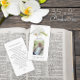 Elegantes orquídeas blancas, una foto y los detalles de tu celebración de la vida en la parte delantera y la oración del Señor, o cualquier oración, en la parte trasera. Hermoso de incluir en un funeral, servicio conmemorativo, aniversario de la muerte o en notas de agradecimiento. COINCIDIENDO elementos de nuestra colección.