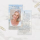 Estas tarjetas de oraciones fotográficas del tamaño de una billetera son fáciles de llevar en una billetera o bolso, lo que las convierte en un gran regalo para los amigos y la familia que asisten a un funeral, servicio conmemorativo o celebración de la vida. Esta tarjeta ha sido diseñada con Salmo veintitrés pero puedes cambiarla a otra oración o poema usando el botón Personalizar. La fotografía tiene fines ilustrativos y puede cambiarse a una de las tuyas.