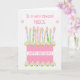 Una tarjeta de cumpleaños muy bonito para tu sobrina con una torta de cumpleaños rosa con muchas velas con motivos. La tarta es rosa, con un patrón de punto de polka y decorada con cúmulos de rosas rosados, Albertinos, pintados a mano con acuarela. '¡Feliz cumpleaños!' está escrito en un tono rosado a juego con una banda blanca alrededor del pastel. Encima de las velas, dice: 'A una NIECE muy especial con un corazón rosado diminuto en cada extremo de la palabra, 'NIECE'. El mensaje interno es sólo una sugerencia y puede editarlo o eliminarlo fácilmente, si lo desea.