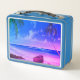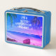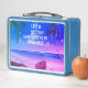 Aléjate en el paraíso con esta colorida caja de almuerzo. Este producto presenta la imagen de una playa tropical con magnífica arena marrón, palmeras frescas, relajantes olas oceánicas azules y una hermosa canoa pintada en la orilla. Utilice la plantilla personalizada para agregar su nombre o escribir su propio mensaje en este cuadro.