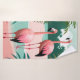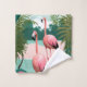 Un lugar tranquilo con dos flamencos rosas a orillas de una exuberante costa tropical, rodeado de un frondoso follaje verde y suaves tonos pastel. Perfecto para añadir un toque de exotismo a cualquier espacio.