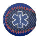 El diseño Paramédico Simbólico Caducus Star of Life presentado aquí sobre una fibra de carbono azul real profunda como el béisbol personalizado de fondo impreso. La estrella del símbolo paramédico de la vida está diseñada para que parezca que está hecha de cromo plateado. Es bueno para una ocasión de graduación, una declaración para tu profesión, o para un regalo con esa apariencia médica que estás buscando.