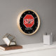 DETENER la señal de tráfico. Icono plano. Color de fondo personalizado. Color personalizado en los números de reloj. Dos campos de texto personalizado.