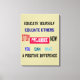 Esta obra de arte socialmente consciente consiste en promover la educación para reducir, y eventualmente eliminar los prejuicios basados en la identidad social de una persona. Una característica única de esta imagen de lienzo es que puede personalizar para cambiar el color de fondo.