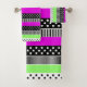 Parcelas de rayas negras, blancas y neonesas con tela crimson y verde
